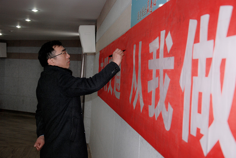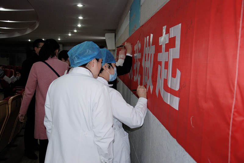为提升全院职工“交通安全,从我做起”的意识,贯彻落实泗阳县城市文明交通集中整治精神,3月15日下午,我院在急诊四楼会议室召开“文明交通集中整治行动” 部署暨文明交通宣誓大会。 会上,院党总支书记、院长颜怀安传达了县卫计委下发的《文明交通集中整治行动实施方案》,他要求全院干部职工严格按照实施方案的要求,做遵守交通的文明人,参加文明交通劝导的志愿者,要积极参加劝导活动,为改善交通环境,提升城市形象做出积极贡献。宣誓大会后,院党总支书记、院长颜怀安带领大家一起进行了宣誓,并在签字板上签名。
