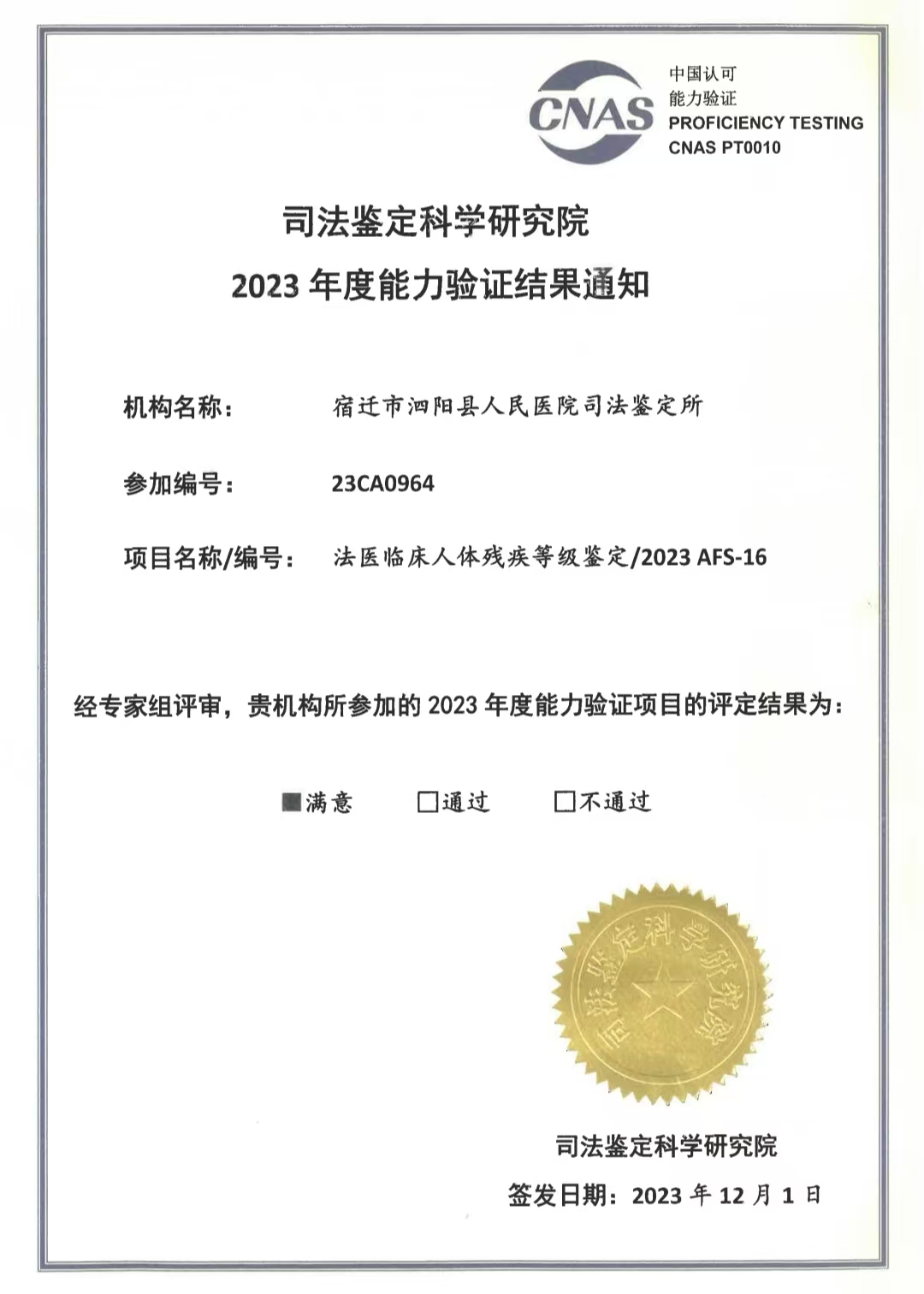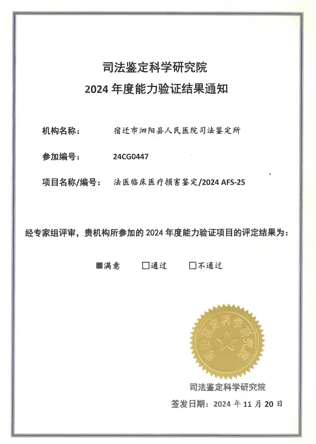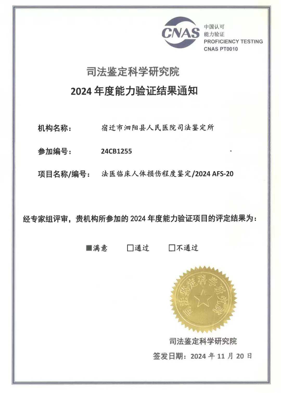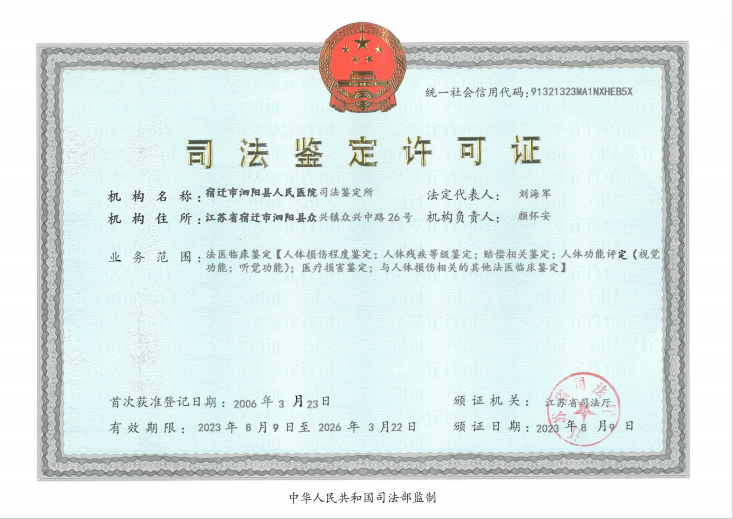 宿迁市泗阳县人民医院司法鉴定所成立于2006年3月,是宿迁市首家经江苏省司法厅核准成立的法医临床司法鉴定机构,也是宿迁市首家通过检验检测机构资质认定的法医临床司法鉴定机构(证书编号:171007030261)。现有工作人员16人,其中国家司法鉴定人13人。拥有完备的司法鉴定设施设备。是宿迁市司法鉴定协会会长单位。