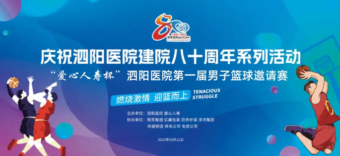 2025年,泗阳医院迎来建院八十周年华诞。为营造喜庆氛围、响应全民健身号召、丰富职工生活,泗阳医院联合新里程集团爱心人寿保险股份有限公司共同举办“爱心人寿杯”泗阳医院第一届男子篮球邀请赛,赛事由泗阳体育裁判员协会指导,各参赛单位协办,一场兼具竞技热血与友谊温度的赛事于2025年10月22日正式启幕!